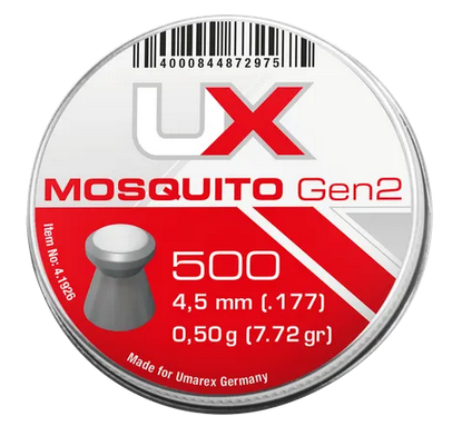 Die UX Mosquitos sind die erste Wahl für kostengünstiges Training und Freizeitschießen auf Papierziele. In der zweiten Generation erreichen die glatten Flachkopfdiabolos eine gesteigerte Präzision durch ein optimiertes Fertigungsverfahren. Sauber gestanzte Treffer sind aufgrund ihres hohen Gewichts und der Form auch bei Seitenwind kein Problem.