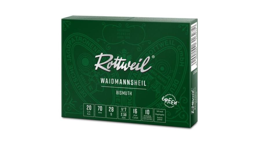 die sowohl die Umwelt als auch die Gesundheit der Jäger schont. Mit einer maximalen Mündungsgeschwindigkeit (V 2,5 m) von bis zu 390 m/s bieten die Rottweil Waidmannheil Bismuth-Patronen höchste Energieabgabe,