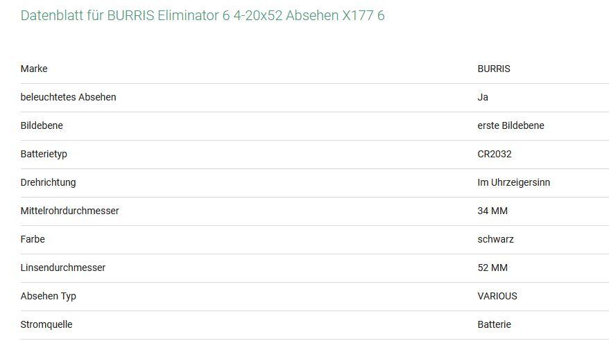 Burris Eliminator 6 4-20x52 X177 Reticle 35mm
