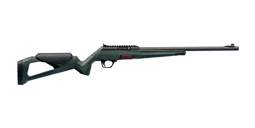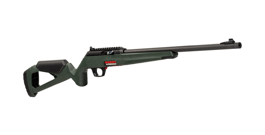 Die untere Empfängerbaugruppe kann zusammen mit dem Verschluss und der Abzugsgruppe mit einem einfachen Druck auf den Knopf auf der Rückseite des Gehäuses aus dem oberen Teil entfernt werden. Kein Werkzeug erforderlich! Der manuelle Sicherheitsknopf kann für eine problemlose Bedienung durch Rechts- und Linksschützen einfach umgedreht werden.