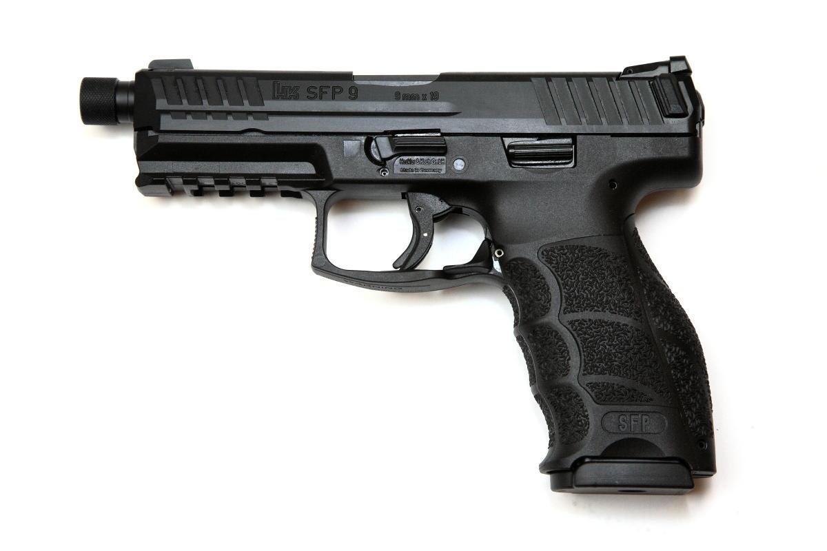 Die moderne SFP9 Schlagbolzenschlosspistole ist ein voll vorgespanntes System mit Single Action Abzug im Kaliber 9 mm x 19. Die Pistole verfügt serienmäßig über einzigartige Charakteristika und innovative Details. Patentierte Durchladehilfen im hinteren Verschlussbereich vereinfachen und unterstützen ein verletzungsfreies Durchladen. Die Demontage der Pistole erfolgt werkzeuglos und bietet höchste Sicherheit zur Vermeidung von Unfällen durch einen erzwungenen Handlungsablauf. Ohne Entnahme des Magazins ist eine Zerlegung der Waffe unmöglich. Entgegen vergleichbarer Pistolenmodelle entspannt die Waffe automatisch beim Zerlegen. Zudem muss der Abzug vor dem Demontagevorgang nicht betätigt werden. Magazin und Ergonomiekonzept der P30 wurden auf die neue Pistolenserie übertragen. die SFP9 verwendet nicht nur P30 Magazine, sondern mittels tauschbarer Griffrücken und Griffschalen stehen auch diesem Modell insgesamt 27 Kombinationsmöglichkeiten zur individuellen Griffgestaltung zur Verfügung. Die exzellente Abzugscharakteristik fördert höchste Präzision bei schnellen Schussfolgen. Sie basiert auf einem ausgewogenen Verhältnis aus Handlage, geringem Abzugswiderstand sowie kurzem Abzugs- und Rückstellweg.