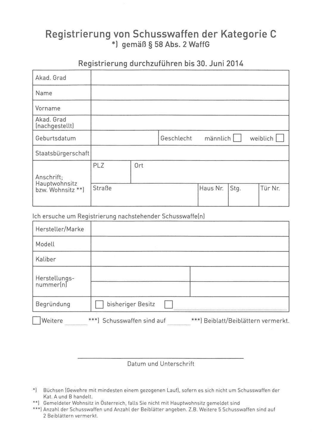Waffenmeldung Kat C per Bestellung / Mail möglich
